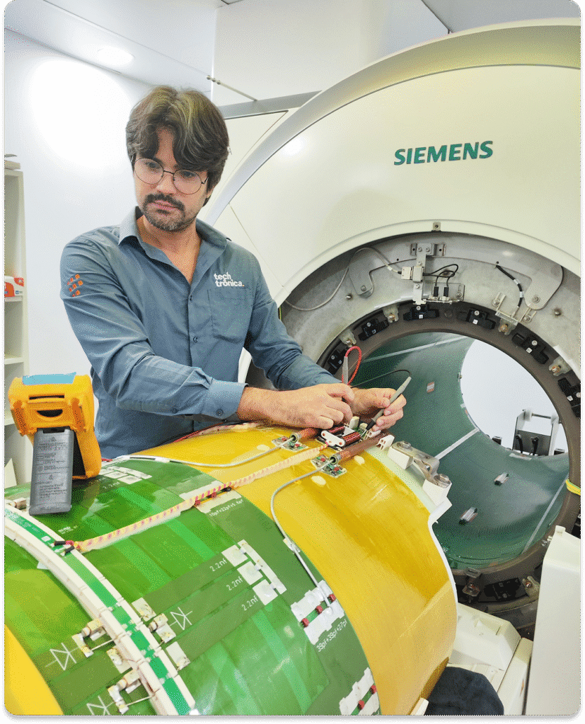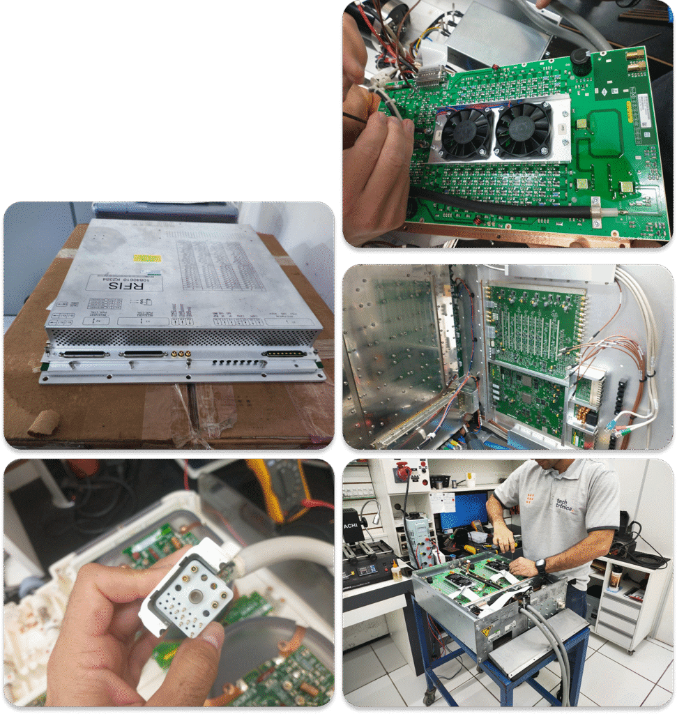 Com propriedade e precisão, nossa equipe altamente especializada realiza reparos de RFPA (Amplificador de Potência de RF), Módulos de Gradiente (GPA), TCU (Unidade de Controle Térmico) e outras unidades eletrônicas, como Codi-box e Tx-box.